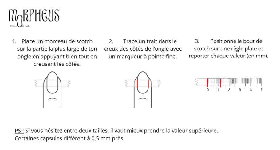 Attention : Il est possible que la taille de vos ongles soit différente d'une main à l'autre.